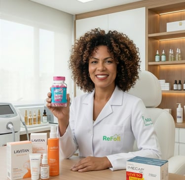 O que é o Método Refoll? É um guia prático que ensina protocolos específicos para cada tipo de queda. Ele funciona como um acelerador, ensinando você a combinar o uso de suplementos (como o Happy Hair ou Imecap) com tratamentos tópicos (como o Minoxidil ou Tônico Poderoso) de forma estratégica.