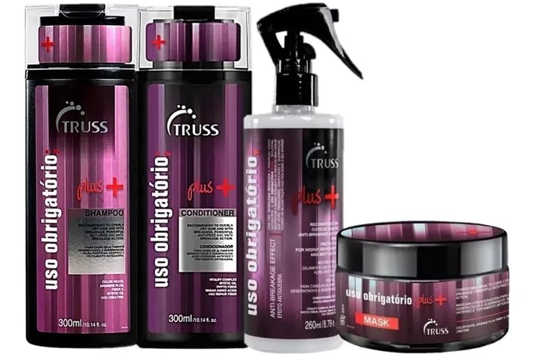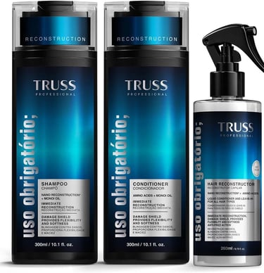 Para quem sofre com a quebra e o enfraquecimento,O Kit TRUSS Uso Obrigatório Hair Reconstructor é um dos tratamentos mais icônicos do mundo da beleza, sendo considerado um verdadeiro "salva-vidas" para cabelos fragilizados. Ele foi desenvolvido focado na reconstrução capilar, sendo ideal para quem tem química (luzes, progressiva, coloração) ou fios que quebram com facilidade.